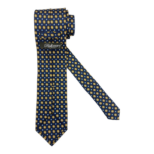Cravatta seta blu fiore giallo e cerchietto azzurro