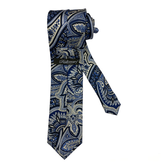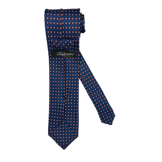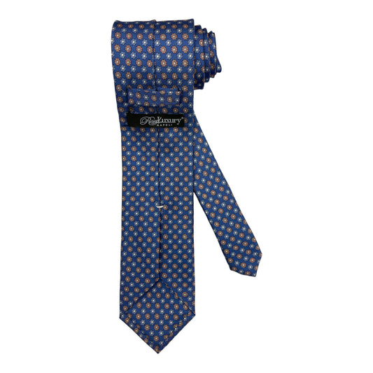 Cravatta seta blu fiori cerchio marroni e bianchi