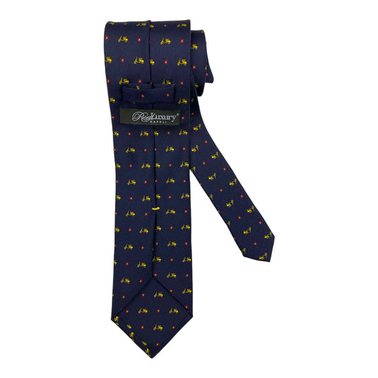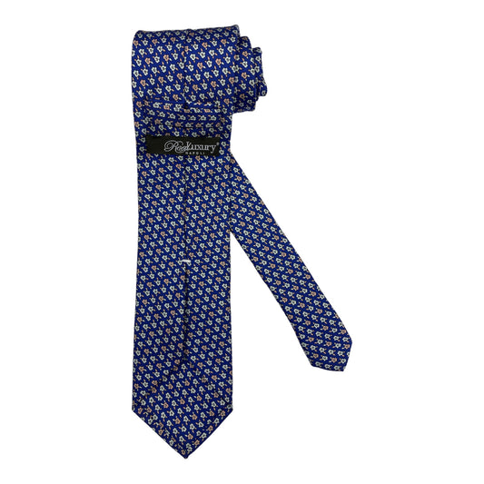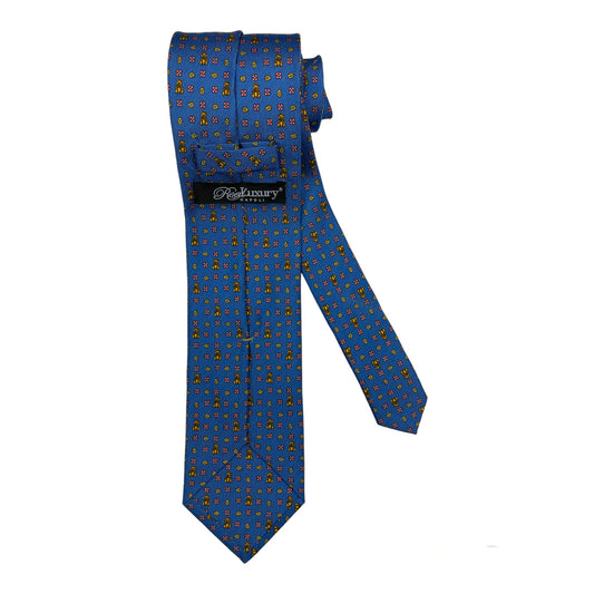 Cravatta seta bluette fiorellini rosa e orsacchiotto gold
