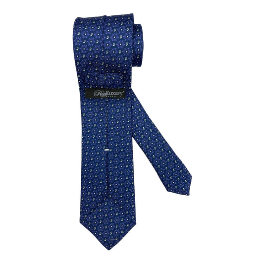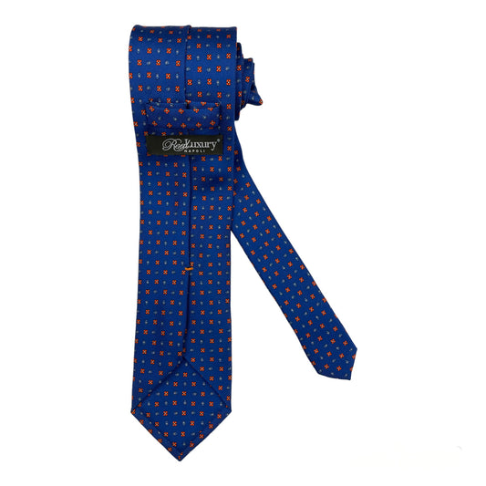 Cravatta seta bluette fiorellini marrone chiaro e celesti