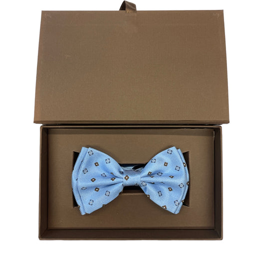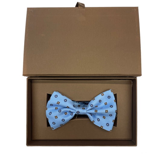 Papillon Sartoriale seta celeste fiori marroni quadri