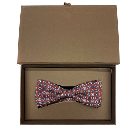 Papillon Sartoriale seta bordeaux con fiori marroni e beige