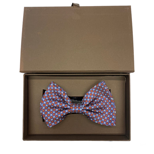 Papillon Sartoriale seta blu elettrico con fiori quadro rossi