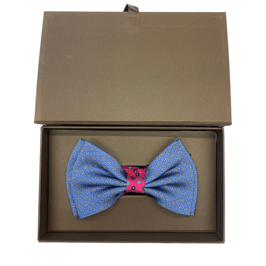 Papillon Sartoriale seta celeste con fiorellini blu e marroni con interno bianco