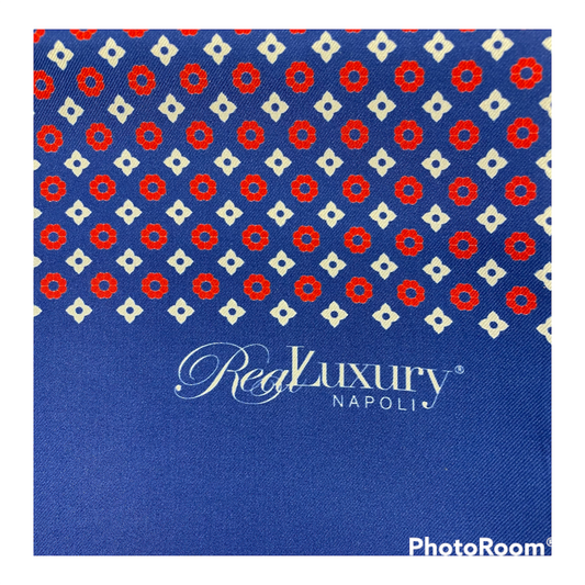 Sciarpa Sartoriale Seta blu fiori rossi e bianchi