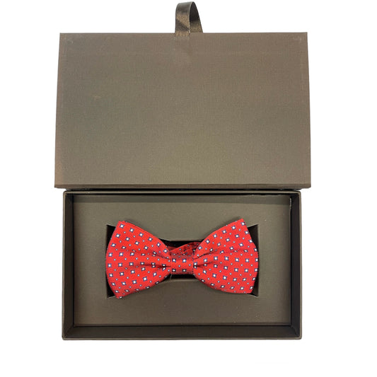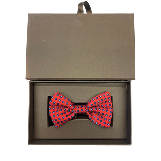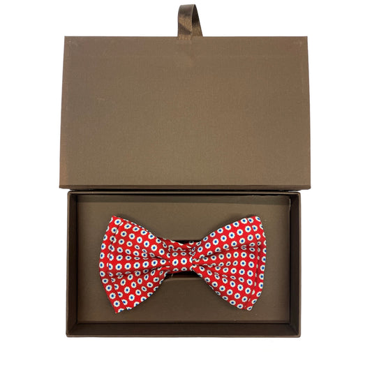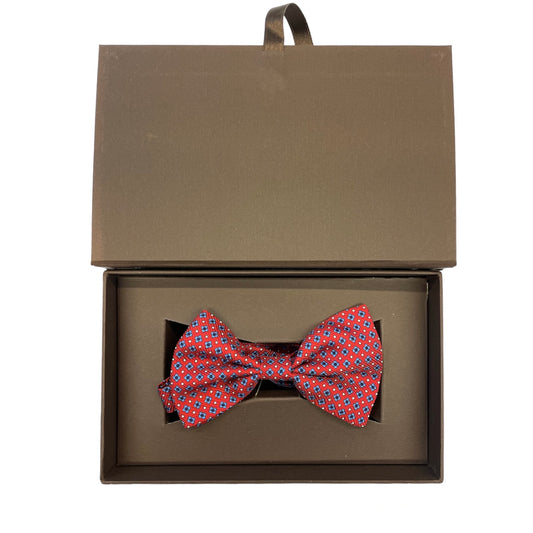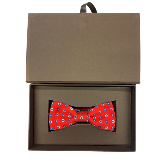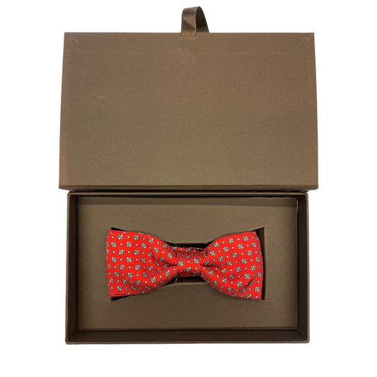 Papillon Sartoriale seta rosso fiorellini marroni chiari
