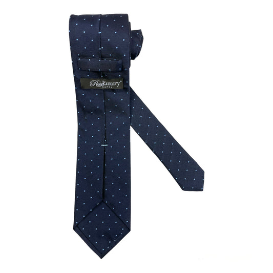 Cravatta seta blu con pois piccoli celesti