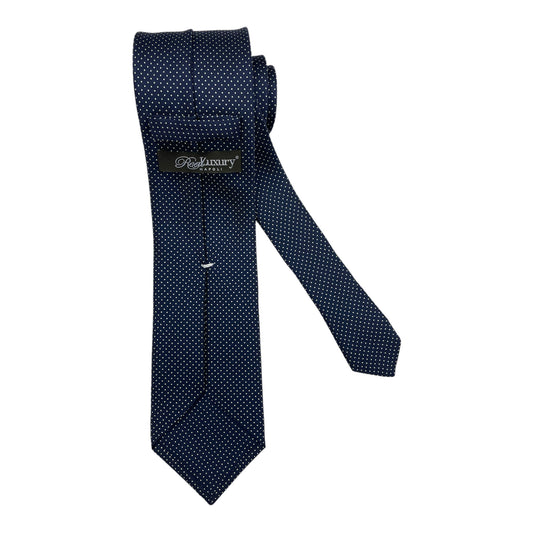 Cravatta seta blu punto a spillo bianco