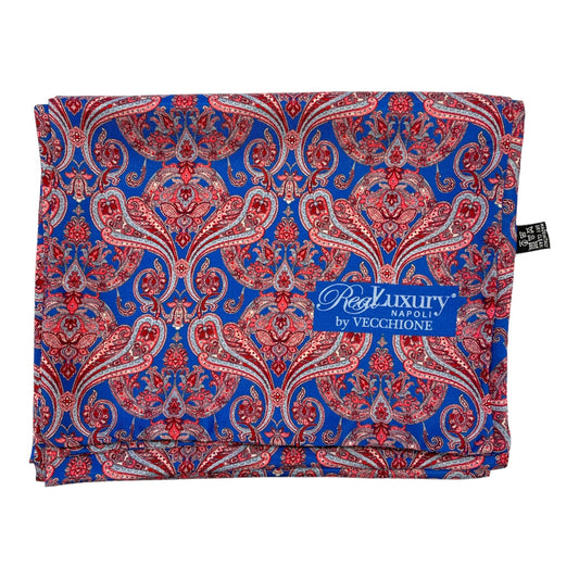 Sciarpa Sartoriale rossa con fiori blu e celesti