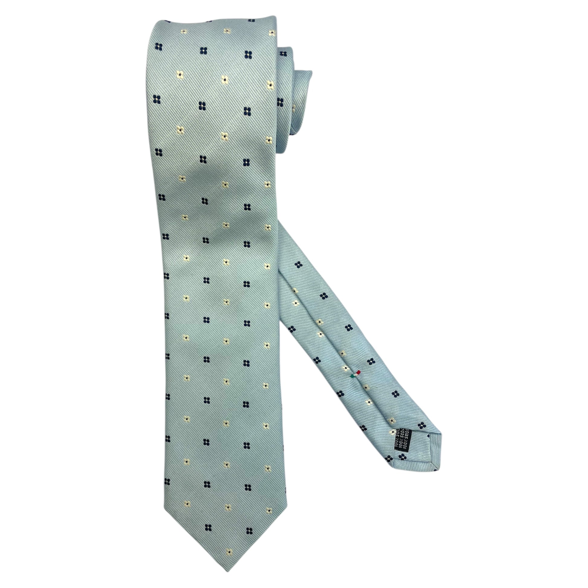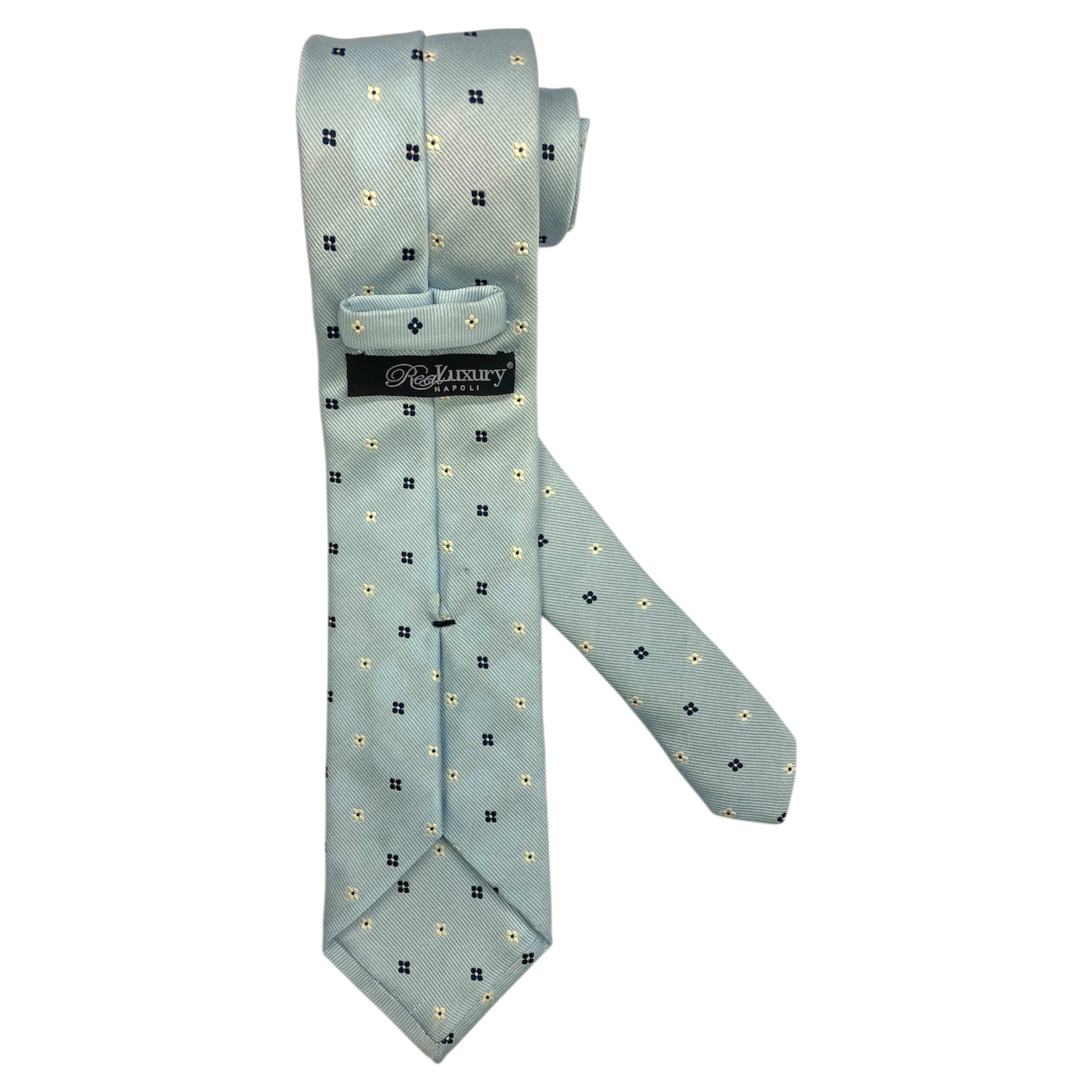 Cravatta seta Azzurra con microfantasia blu e bianca