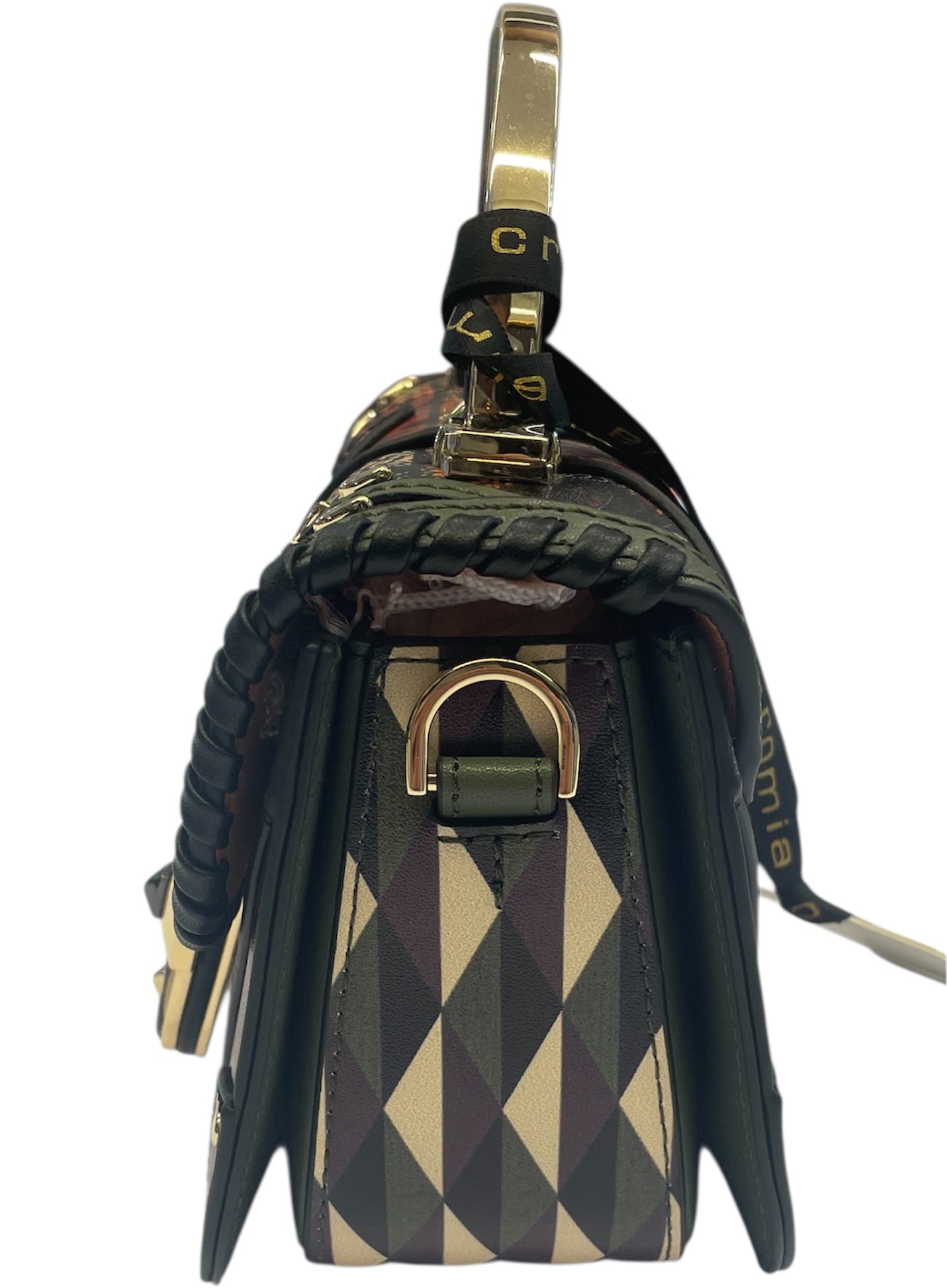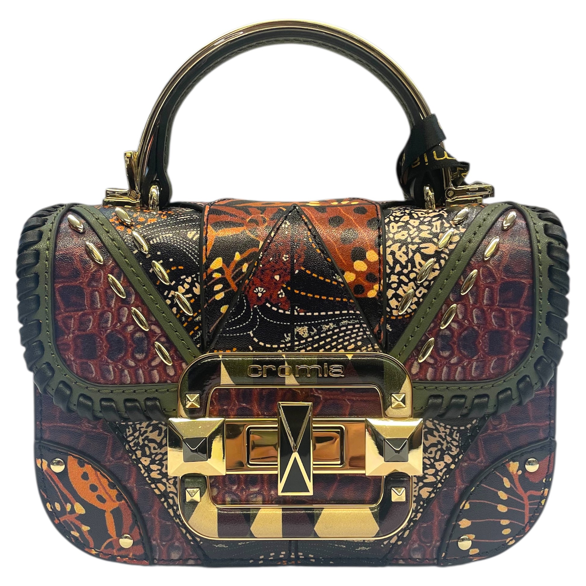 Borsa a mano dallo stile deciso e contemporaneo, realizzata con un mix di stampe per un effetto patchwork originale.