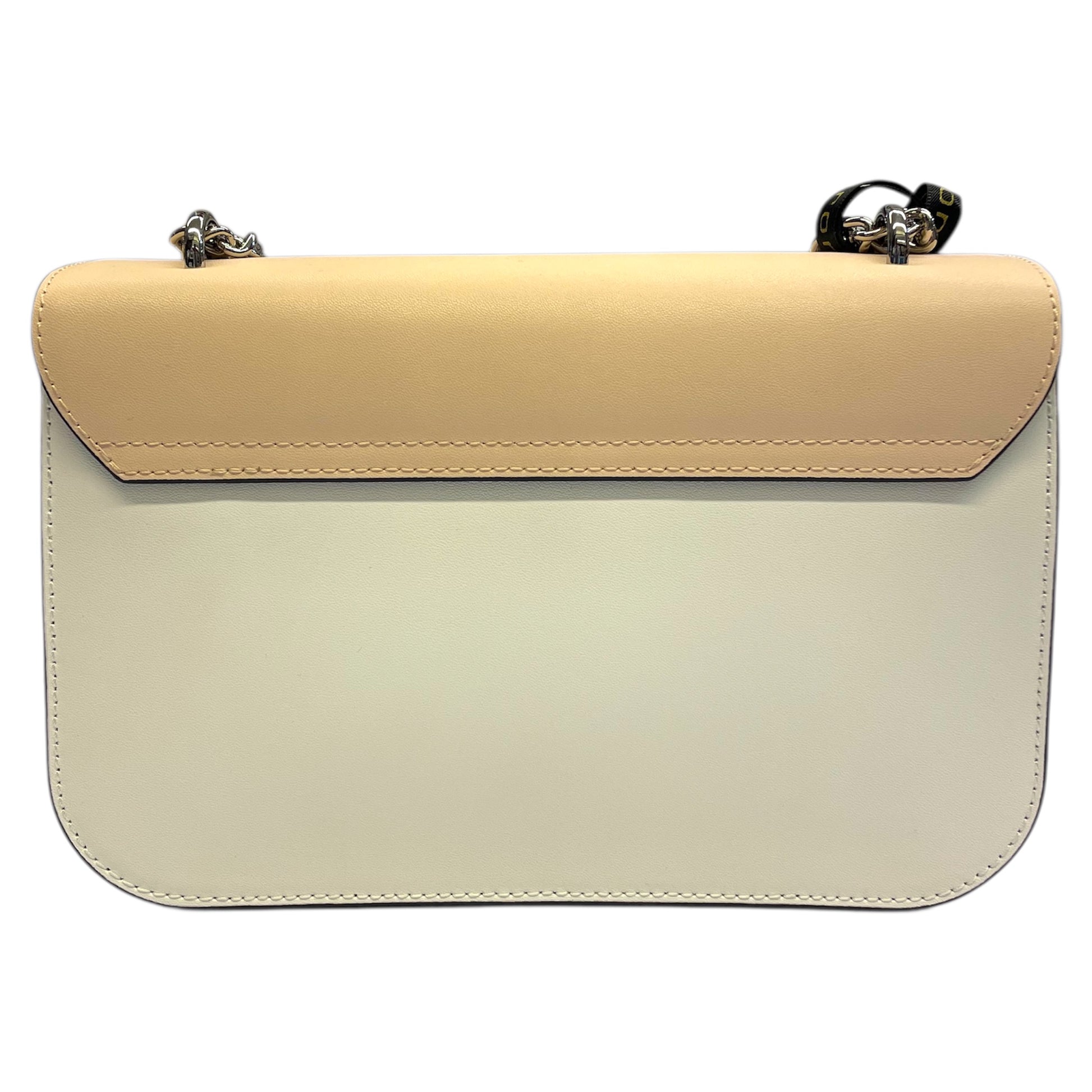 Borsa con patta, doppia vestibilità tramite la tracolla di catena che permette di indossarla a spalla o crossover.