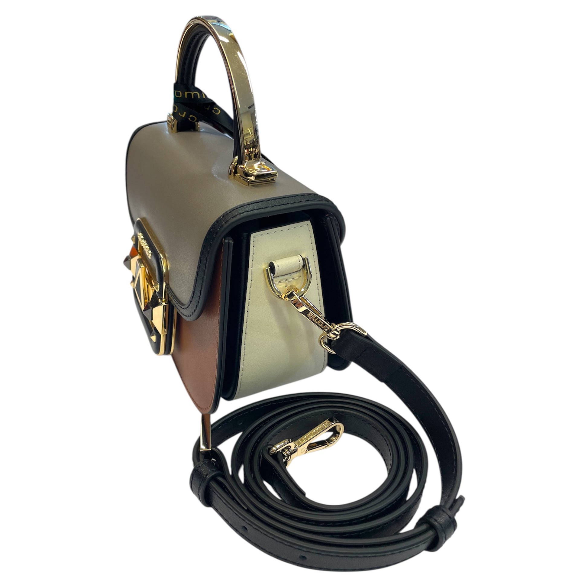 IT Jewel è una borsa a mano orizzontale realizzata in pelle di vitello liscio e accessori in colore oro chiaro.