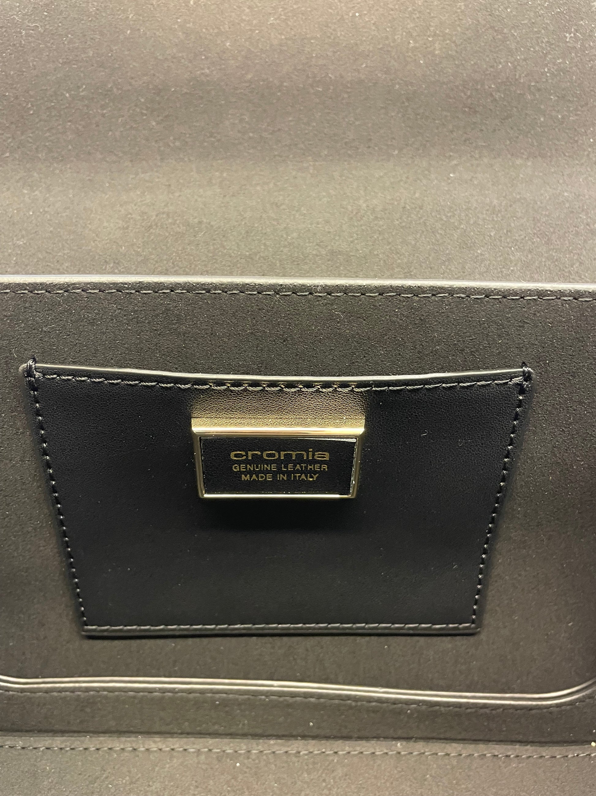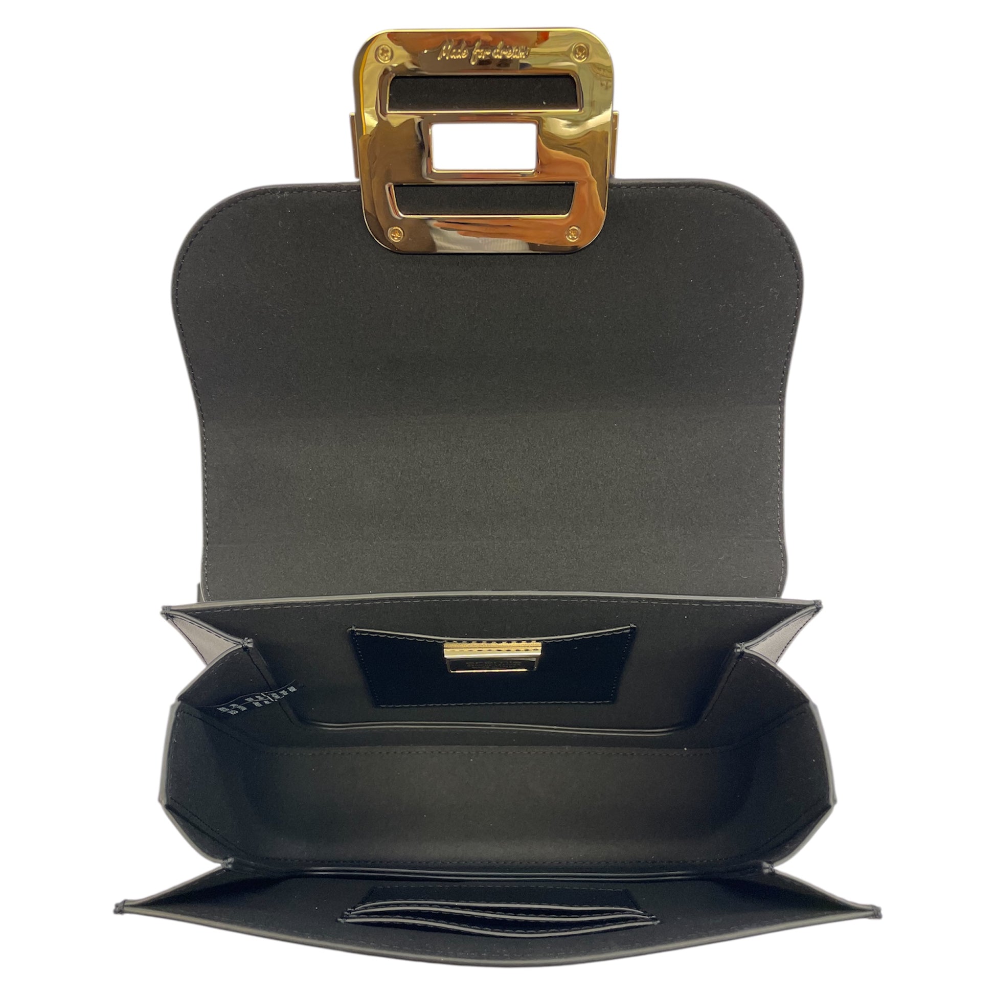 Linea Iconica realizzata in pelle di vitello liscio, caratterizzata dal bordino nero e dalla chiusura a girello.